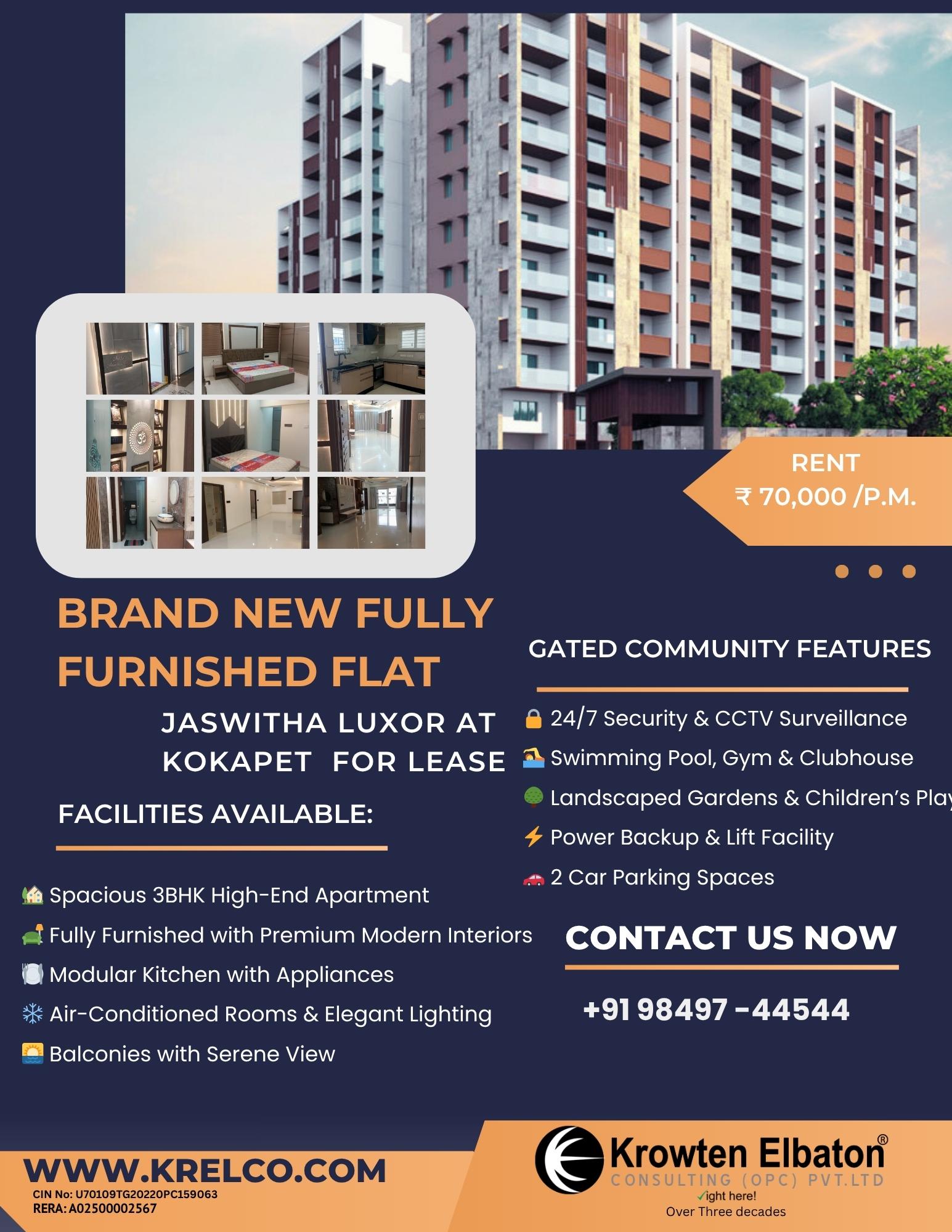 BRAND NEW FULLY FURNISHED FLAT @ KOKAPET